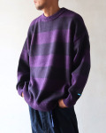 ワイドピッチのネイビー×パープルカラーボーダーが雰囲気のあるクルーネックニット。