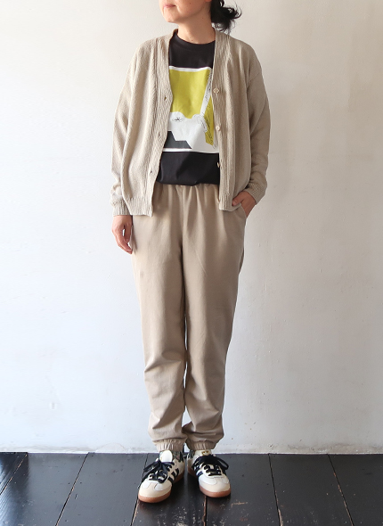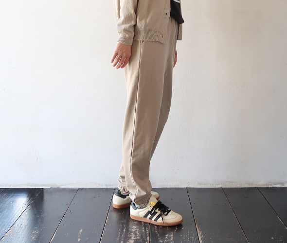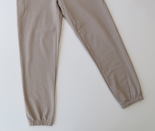 ソフトなオーガニックコットン58%/リサイクル・ポリエステル38%/ポリウレタン4%素材の起毛ヘザーテリーで、伸縮性と弾力性により膝が出にくく、すっきりとしたシルエットをキープ。肌触りの良さに加え、両サイドにポケットを配し、普段使いはもちろん、いろんなシーンで活躍します。ヨガタイツやジョガーパンツというよりは洗練されたスウェットパンツのような、快適に動けるレギュラー・フィットパンツです。