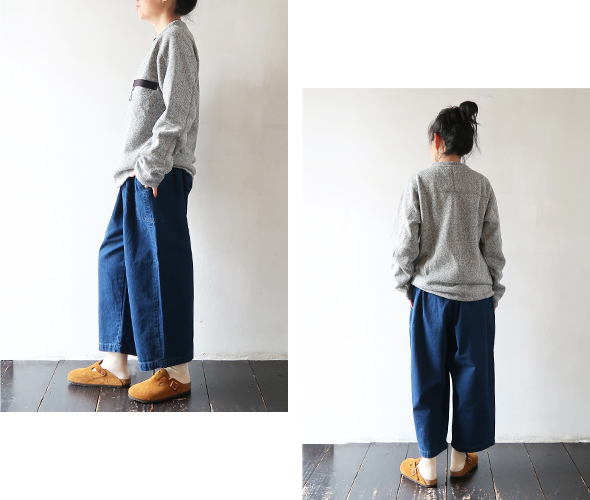 (パンツ/[homspun] 10オンスデニム ギャザーパンツ BLEACH BLUE