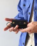 車のリモコンキーも収納できる大振りなレザーキーケース。フック部分はホックで取り外しできる機能的な仕様。オリジナルのバケッタレザーが使うほどに手に馴染んでいきます。
