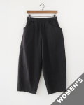 ヒップラインがゆったりとしながら、裾にかけてすっきりと見えるクロップドパンツ。生地は洗いざらしたような柔らかな風合いの加工を施された張りコシのあるコットン素材。肌から離れるようなサイズ感とシンプルにそぎ落としたデザインが自然で立体的なシルエットを生み出します。ドロップポケットをワンポイントとして、リラックス感のあるアイテムです。