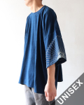 キャピタルの定番IDG天竺 HUGE-Tが入荷です。インディゴの天竺生地を使用したビッグシルエットのTシャツで両袖には伝統民芸である刺し子刺繍が施された唯一無二な逸品です。