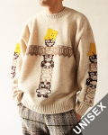 トーテムポールにクッキーになった RAINBOWY がモチーフになったユーモアあふれる KAPITAL ならではのクルーネックニット。