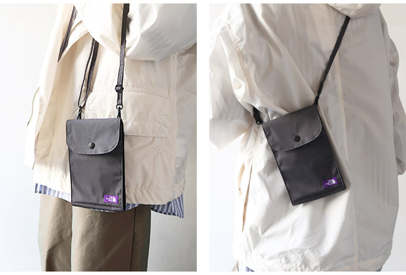 中央のファスナーポケットは出し入れしやすい浅めの設計で、背面にスマートフォンなどの出し入れに便利なポケットがあり、ショルダーストラップは取り外し可能です。