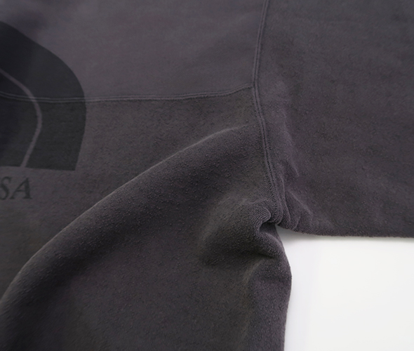 製品染めを施すことにより、着込まれたスウェットのような色味と風合いを表現しています。 フロントにTHE NORTH FACE Berkeleyグラフィックプリントが施されています。