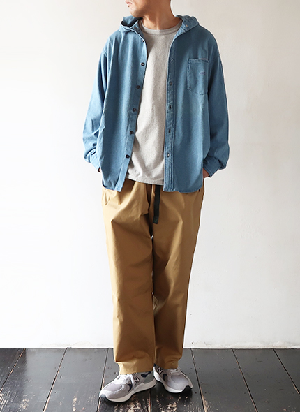 柔らかく肌当たりの良い、オーガニックコットン インディゴ天竺を使用したフーデッドシャツ。第1釦は着脱がスムーズなロゴドットボタン仕様になっており、左胸に THE NORTH FACE ロゴ刺繍が施されています。程良くリラックス感のあるシルエットで、一枚では勿論、カットソーやスウェットの上に羽織っていただくのもオススメ。ライトアウター感覚で着用いただけるアイテムで、これからの季節に活躍しそう。