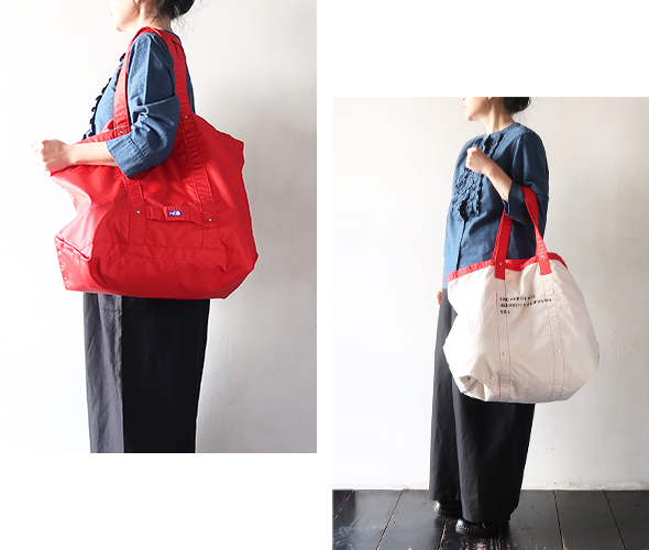 気分やスタイルに合わせた使い分けが楽しめる、リバーシブル仕様の大容量トートバッグ。