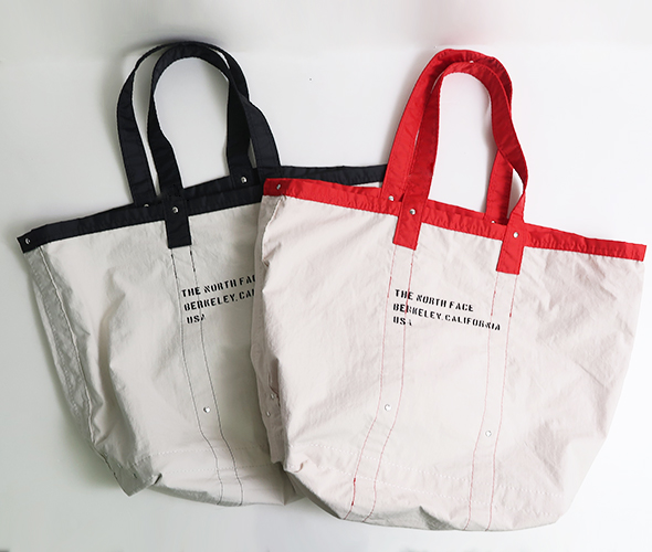 裏面には生成りのオーガニックコットンリップストップを使用し、THE NORTH FACE Berkeleyタイポグラフィックがプリントされてます。荷物の出し入れしやすいシンプルな構造に、奥行もあり収納力も十分で、ハンドルも肩掛けしやすい長さです。環境に配慮したフッ素系化合物を使用しないPFCフリーのはっ水加工で機能性も◎。