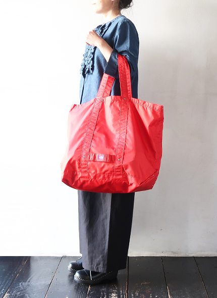 マーケット用にも重宝しそうな大きめでたっぷり入るトートバッグ。リバーシブルで楽しめます。