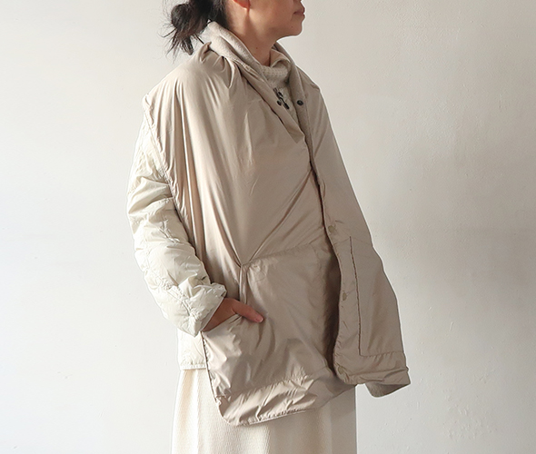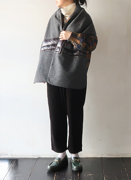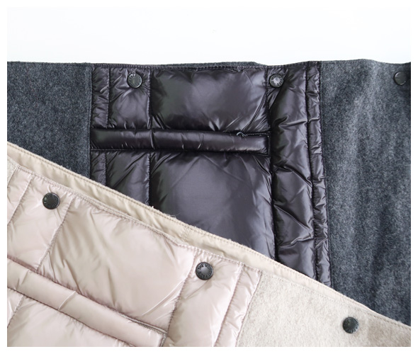 | 素材 | 表地 wool65% nylon35% 裏地 polyester100% 別布 nylon100% 中綿 down72% rayon20% feather8% |