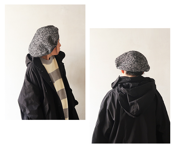 ミックス感のある味わい深い表情のファブリックを採用したベレー帽。レザーのパイピングが施されるなど丁寧な仕様が魅力的なアイテムです。クラシカルなムード漂う一品。