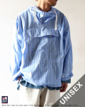 イギリス軍の士官学生に支給されていたスモックを、軽やかなシャツ地ストライプに置き換えた、カデットスモックパーカー。ボタンフラップによるスクエアポケットも備わって、ミニマルにまとまった一枚です。ウエストや裾の紐を絞ることで、その日の着こなしに合わせてシルエットを変えられるので、スタイリングの幅も広がります。フード付きでカジュアルさがありつつも、ラフになりすぎないシャツ素材で、大人カジュアルな雰囲気。