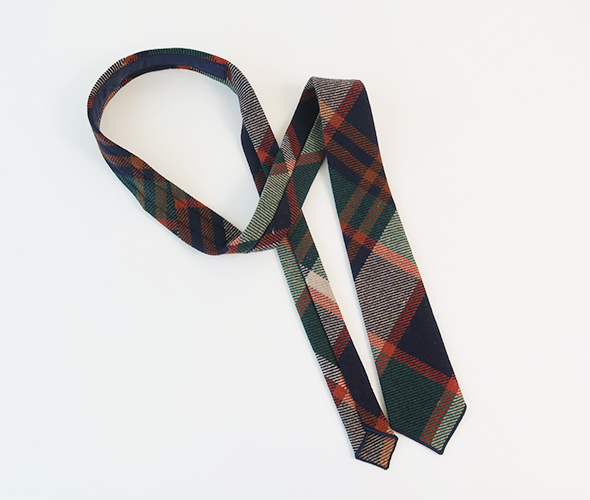 毎シーズン、コレクションのファブリックを使用して制作される定番のネクタイ。密度の高いヘビーウールを使用したチェック柄が秋冬らしいアイテムです。あえて洗いをかけることでカジュアルな雰囲気が漂います。