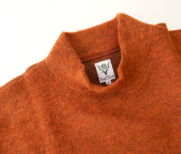 [South2 West8] S.S. Mock Neck Shirt - W/PE Boiled Jersey - ORANGE