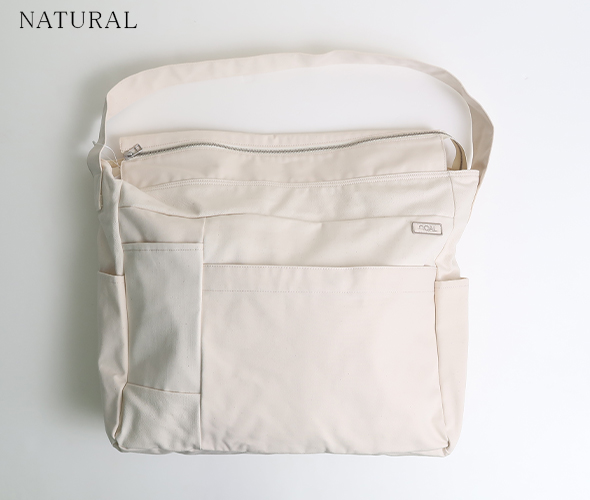 たっぷりの容量に荷物の安定感がでるマチがあるショルダーバッグ。