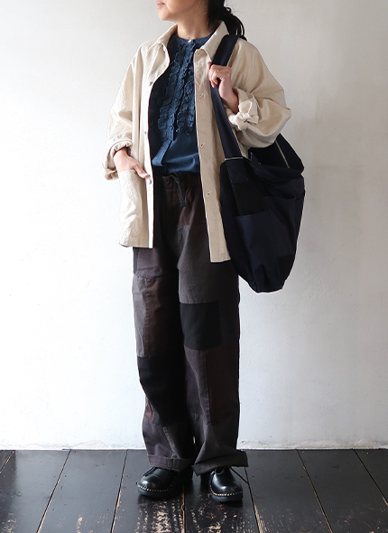 一見ワントーンに見えますが、パッチワークの様な生地のMIX感を楽しんでいただけます。