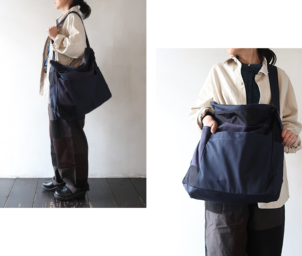 今期キーになっている生地の切り替えにクラフト感が感じられるバッグです。