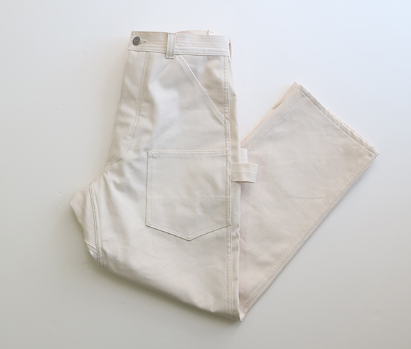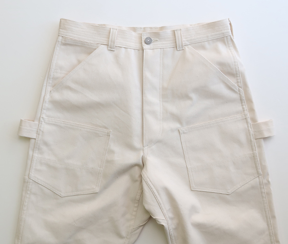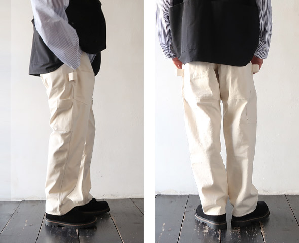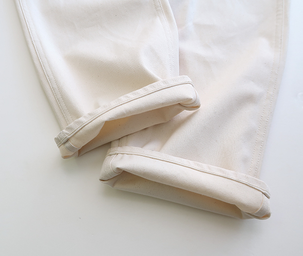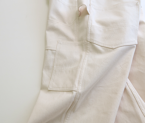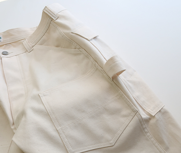 両サイドのハンマーループが良いアクセント。素材は通年で穿ける10.5ozのワークデニムを使用しています。