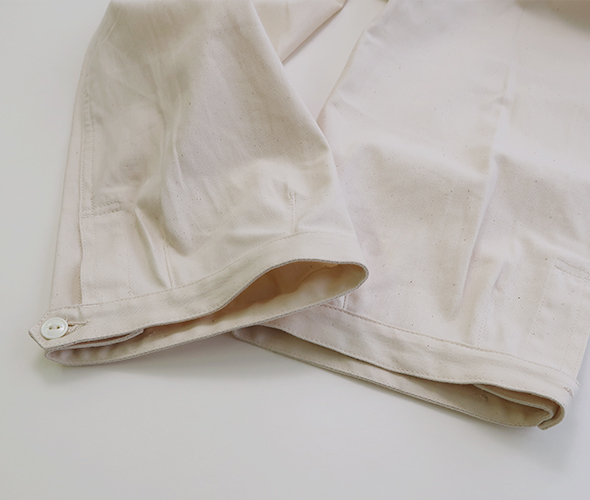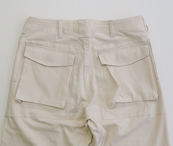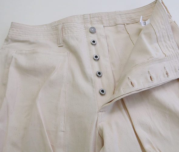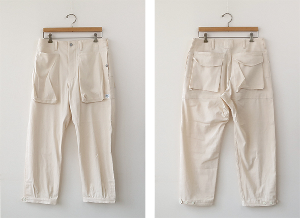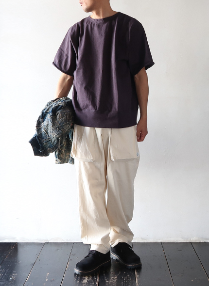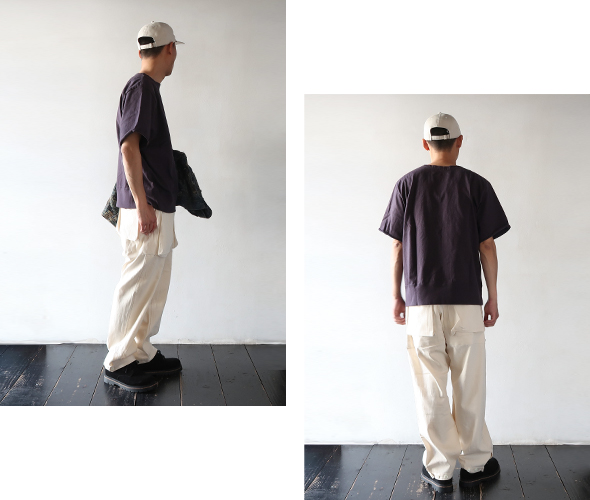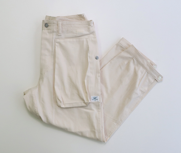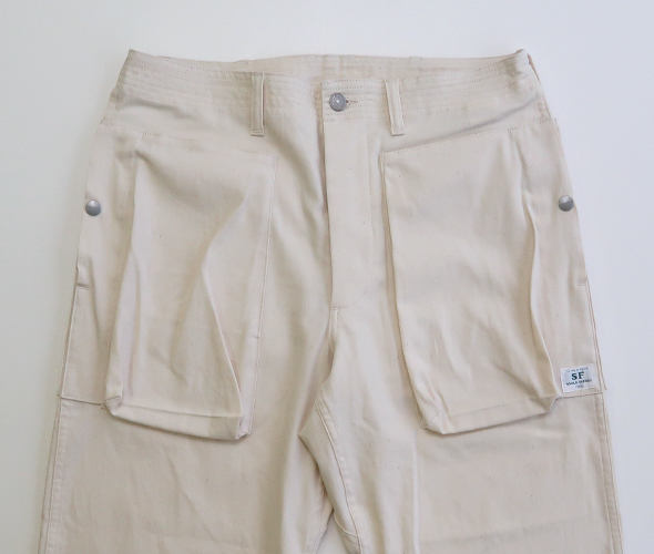 ササフラスの定番のモデルであり、人気を誇る Digs Crew Pants 4/5 が 8oz Denim 生地を使用して登場。フロントポケットは、上からと横から(スナップボタン)のアクセスが可能で、バックスタイルは、フラップにマチのあるポケットが特徴的。すっきりと見える少し短めの丈感で、裾には3つのボタンが付いていますので、シルエットの変化楽しめます。ボタンフライ仕様に、ウエスト部に強度な7ステッチ、タフさと大容量の収納ポケット、デザイン性をも兼ね備えた逸品です。綿100%の薄手のデニム生地を採用した、目が詰まりしっかりとしたササフラスらしい頑丈なパンツでありながら、春夏の季節にも対応したパンツです。