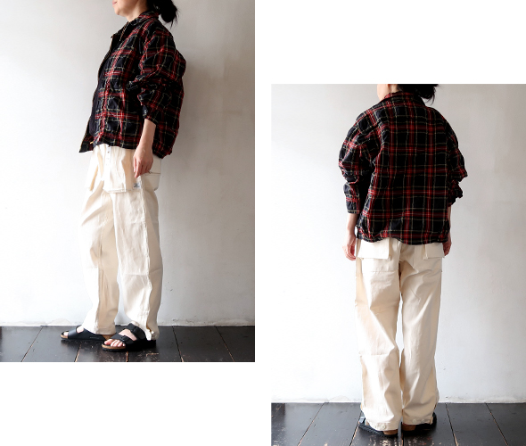 Sサイズでウエスト大きめなので、ウエストはベルトでぎゅっと絞って穿いています。