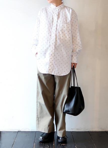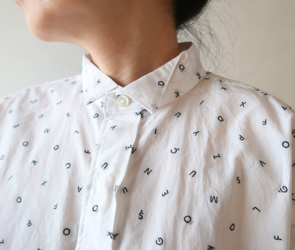 [Engineered Garments] Wing Collar Shirt - Cotton Alphabet Embroidery