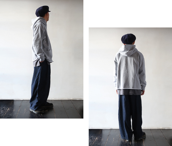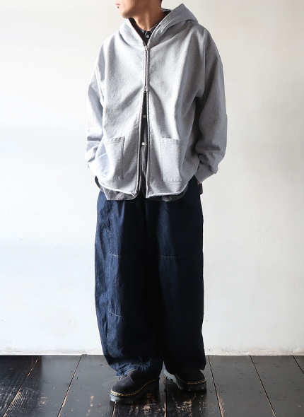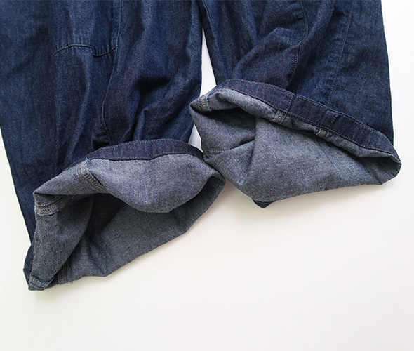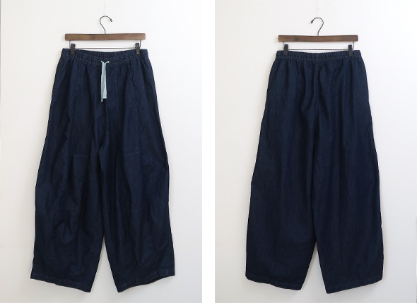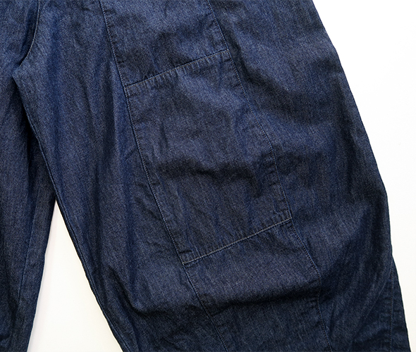ウエストと裾のダーツ処理によりフロントが大きくふくらんだ独特のシルエットが魅力の人気アイテムですが、こちらは6ozと非常にライトなデニム素材を使用しており、幅広いシーズンに活躍してくれそうです。