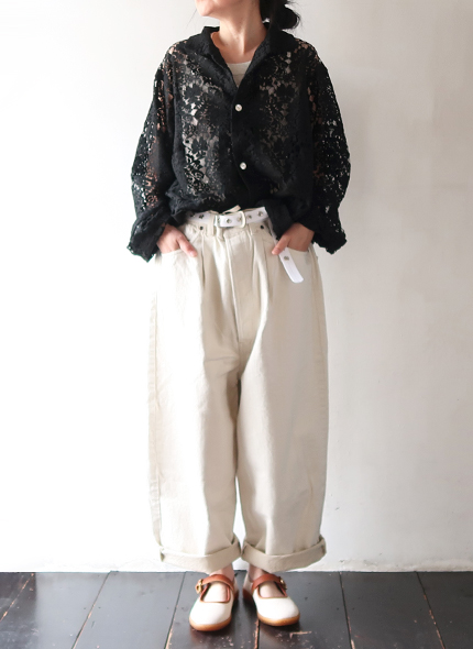 パンツ/[HAVERSACK] ワイドテーパードホワイトデニムパンツ