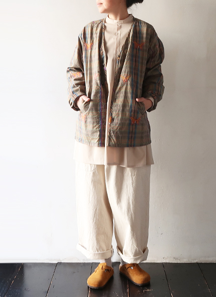 | 素材 | 表地/基布:cotton 100% 刺繍:polyester 100% 裏地:cupra94% silk6% |