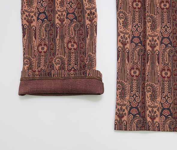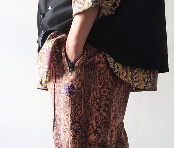 〈NEEDLES〉定番のオリジナリティあふれるポリエステル製のジャカード素材で制作されるトラックパンツ。スポーティなトラックパンツの形に、レトロなムードのファブリックを組み合わせたアイテムです。