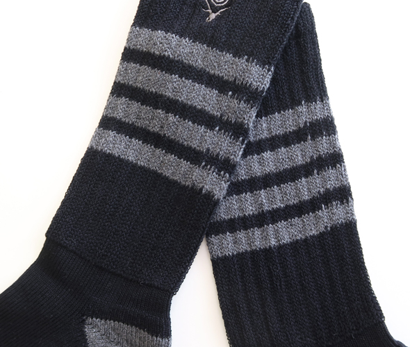 ロゴがさりげなく取り入れられたラインソックス。プレゼントにもおすすめです。