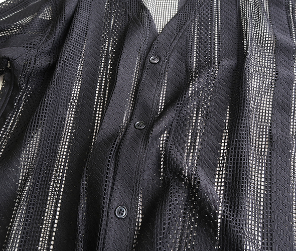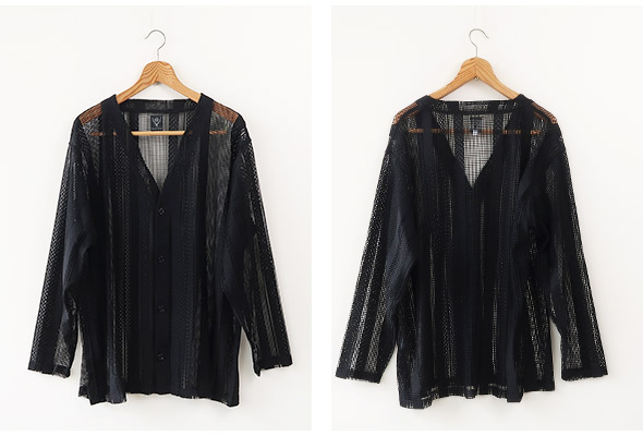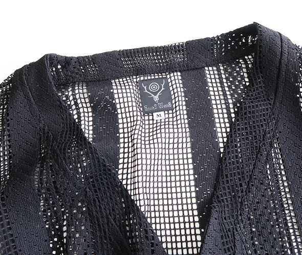 ポリエステルレース素材を使用した、通気性と伸縮性に優れた SOUTH2 WEST8 でお馴染みのメッシュカーディガン。繊細なレースワークで、透け感を活かしたレイヤードのスタイリングをお楽しみいただけます。