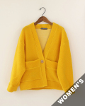 発色の良い、綺麗なイエローカラーが素敵なガウンカーディガン。もこもこっとした柔らかなウール素材のパイル地が優しい印象です。ショート丈がバランス良く、ワンボタンと大きめの両サイドのポケットがポイントに。保温性がありつつ、軽い羽織り心地です。