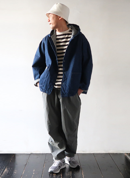 [TIGRE BROCANTE] 7オンスデニム カンガルーベストをアウターに使用したスタイリング