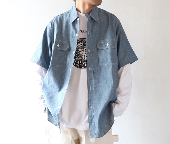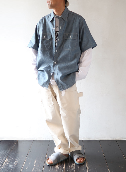 シャツ:[TIGRE BROCANTE] 6ozデニム ヤッコオープン8分袖シャツ