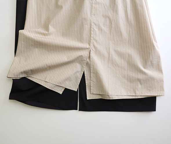 前後で着丈差を出した両脇裾のスリットで