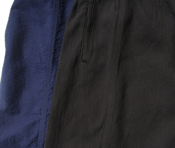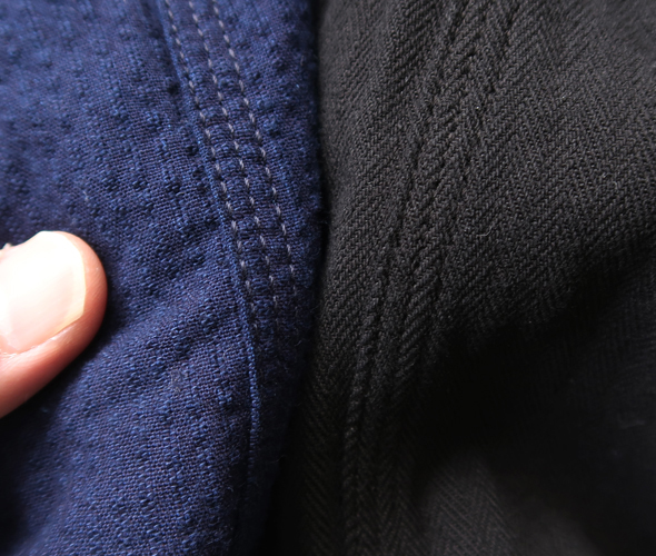 今期TAKANNAではBDヘリンボン(左)とインディゴドビー生地(右)の二品番をセレクトしています。
